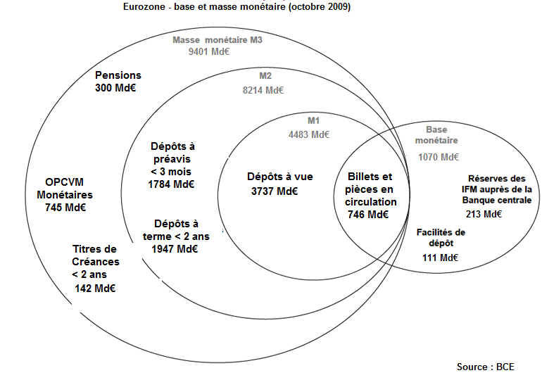En considérant que le système bancaire dispose des fonds propres suffisants (8% des crédits), les « fuites » en monnaie centrale qui représentent donc 15% (13% de billets et 2% de réserves obligatoires) limitent sa capacité créatrice de nouvelle monnaie scripturale bancaire (monnaie secondaire).