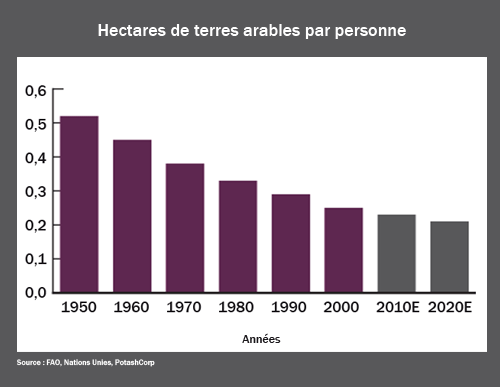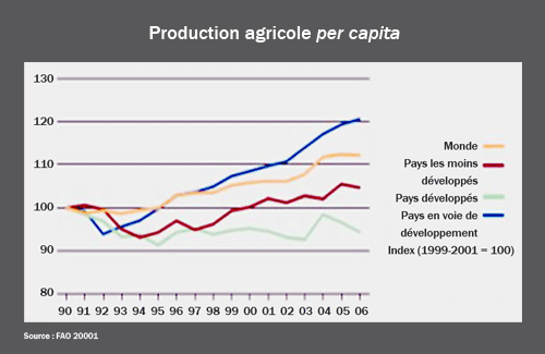 Croissance de la population, diminution des terres agricoles, et une production qui ne suit pas.