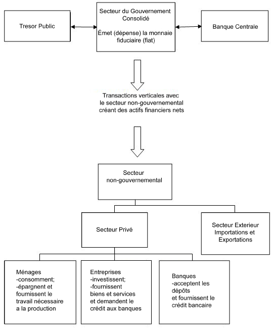 Alors que ces transactions au sein du gouvernement se produisent, elles ne sont pas importantes pour la compréhension de la relation verticale entre le secteur consolidé du gouvernement (Trésor Publique et banque centrale) et le secteur non gouvernemental.