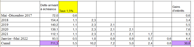 En estimant que les taux d’intérêts moyens soient de 1,5% , c’est 30,8 milliards